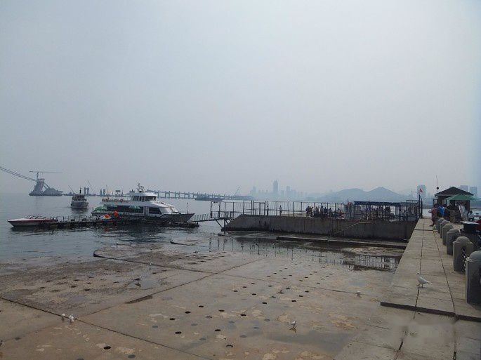 早上准备去金石滩,在酒店用过早餐,前往火车站后面的快轨车站。到了之后去买票,结果被告知列车坏了,去不了。在附近转悠看有没过去的长途客车,打听了有一个地方可以坐,但是过去被告知修路,不能过去。想到应该是昨天晚上中石油大连输油管道爆炸起火的原因,不是修路或者车坏了,哪能都这么巧呢。后来经人指点,我们在快轨车站买了到**(当天列车终点只到开发区站),到了以后转乘安盛到金石滩的公交车,前后花了1个多小时才到。不过还算顺当,转乘也不费力,从快轨车站出来,向东走大概几百米就到了公交车站。路上路过一个桥的时候闻到了强烈的汽油味,路边还有很多消防车停着,桥面可以看到一些烧黑的痕迹,应该就是事发地点,这刚好是快轨路过的地方,难怪不能到金石滩了。