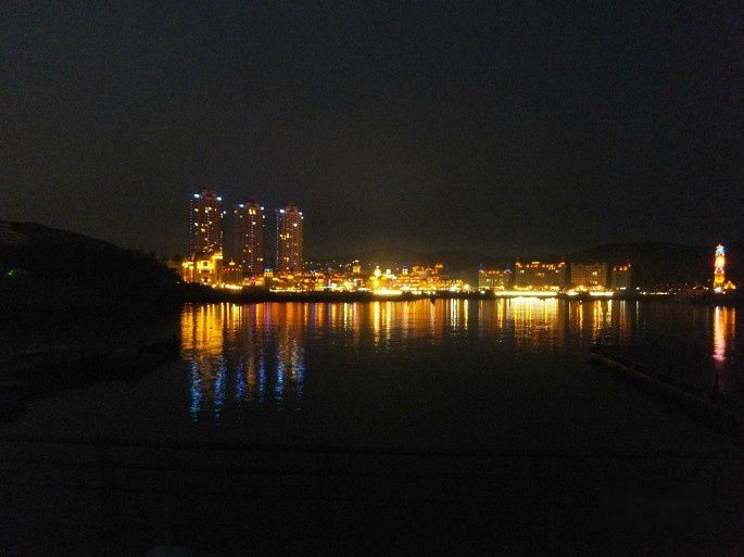 继续前行,到了老虎滩的一个桥上入口,不清楚是啥地方,反正就是顺着堤边一直随意漫步,晚上散步的人也还蛮多的。天色很暗,看不清海水的颜色,只看到波浪一波波的袭来,拍打岸边发出哗哗的声音。对面的建筑和海中的灯塔发出亮光,微微照亮了水面,这时有一艘警用的快艇从海面疾驶而过。这样海边漫步的感觉十分惬意,远离的工作的繁忙,有一种难得的、闲庭信步的自由感。
