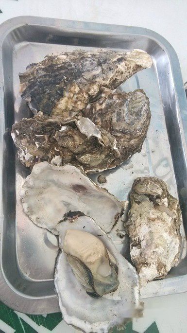 午饭就在海边广场上吃的,都是些海鲜,扇贝和生蚝之类,价格都不太贵,二、三十1斤吧。