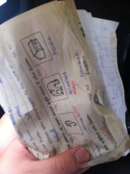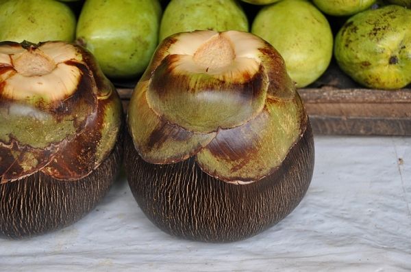 下 面的两个当地人吃的东西,大家就不要去试了,一个忒恶心,一个忒难吃。那个很漂亮的果子(大小像椰子,看着像山竹,我以为吃法,味道和山竹类似),我问水 果店老板娘的时候,我那个司机就摇头,但还是不死心,说要买一个,司机就说要她弄给我吃,我回去吃不了,其实我以看,我觉得像巨型山竹,吃法也该是那样, 不过,看见老板娘以点多一点的扣开外壳,然后把她的黑手伸进去抓了把黄色的果瓤,接着开始挤手里的黄色东西(开始联想),汁液滴到杯子里,然后加了点水和 冰,我看完了,付钱走人,实在没勇气喝一口。唉!后面那个叶子,我是在火车上看到有人吃,路边有卖2卢比片,我买了10片(没零钱),那味道是又涩又辣又 腥又苦,不信的话你们944,呵呵!