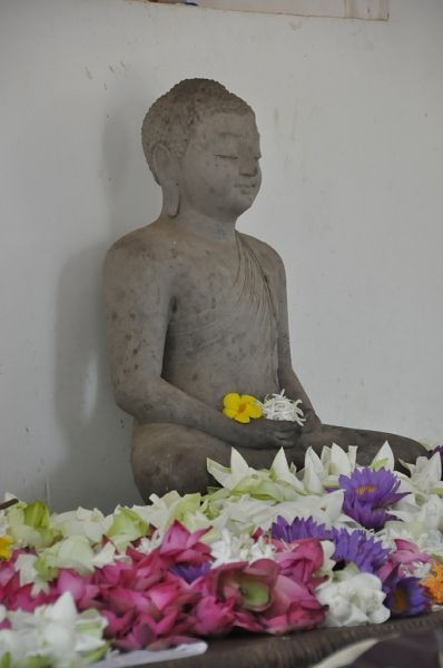 这是菩提树那个寺庙里的一尊佛像,我很喜欢,忒别是陪着多彩的花,漂亮!