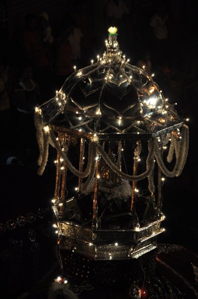 关键的佛牙来了,大象拖着的,而且,是装在一个黄金圣器里。