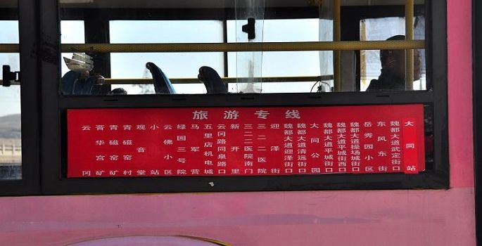 大同的车子真的是不太守时的,说好的6点15走,结果到迟了半个小时才出发,然后市区边上到一个类似车站的地方又等到车上座位都坐满了,太阳也已经升起来了,才正式开往目的地去(票价30)。