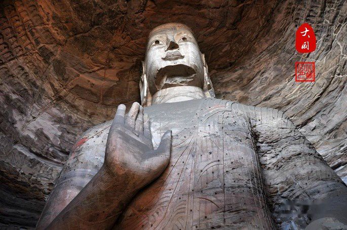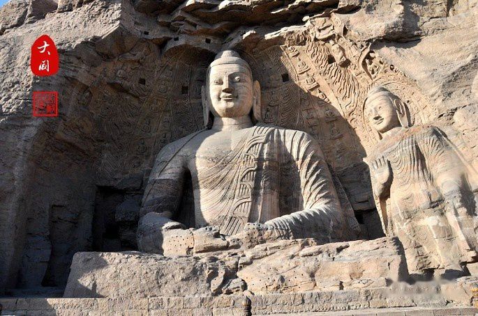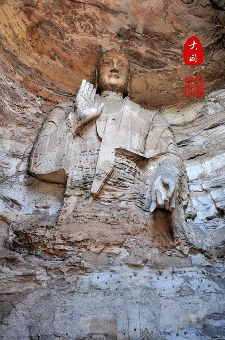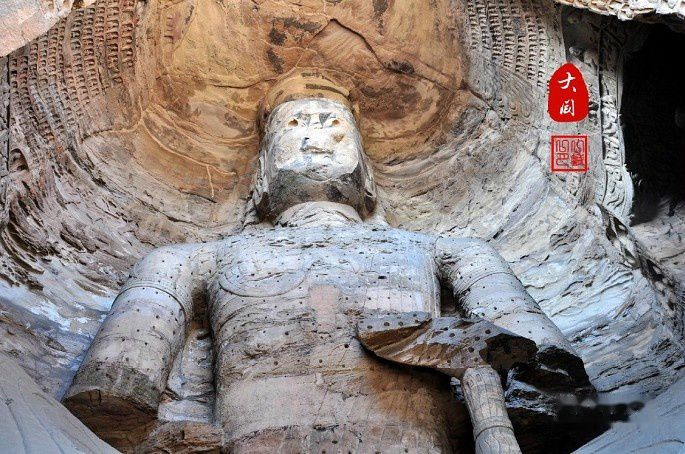 第20窟:北魏开国皇帝道武帝拓跋珪。是云冈石窟中最富标志性的露天大佛。
