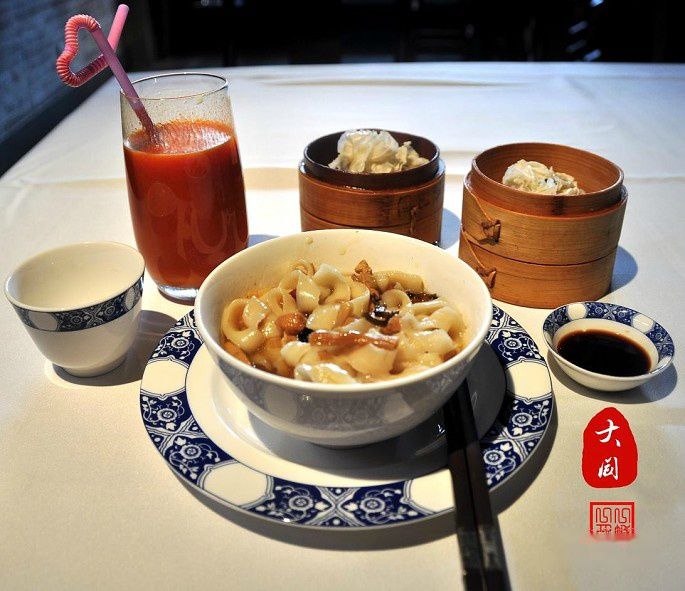 剩下的就是吃了,来了山西,肯定是吃面食为主了,两天吃的主要都是面食,东方刀削面等。也有大同兔头,羊蹄等。不过大部分都属于有吃没拍。就有一顿去仿古街上吃有名的凤临阁,内部装修仿古且超级豪华,厕所每个隔间门板上都是有液晶屏的。就为了去里面逛一圈也要吃顿她们家的招牌烧麦去。当然还有心心念念的沙棘汁。