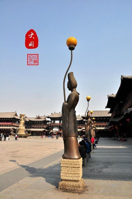 华严寺前的广场上侍女宫灯特别有味道。