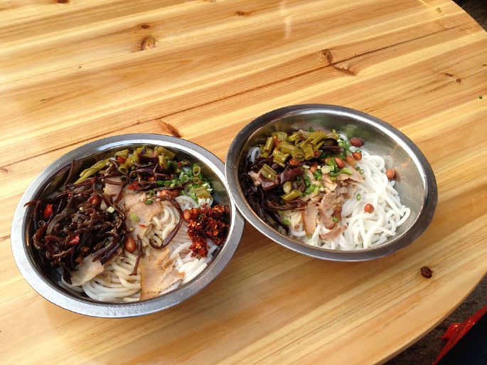 几乎是一路睡到阳朔, 毕竟很久没有熬夜坐车了,甚是疲劳。7点半左右就到了阳朔汽车北站(好像所有的车都集中到北站了)。肚子饿了,便在车站旁前的一家小店找了桂林米粉店,坐下来品尝桂林米粉。