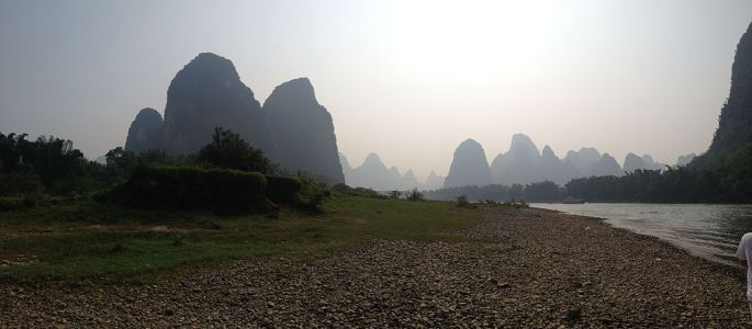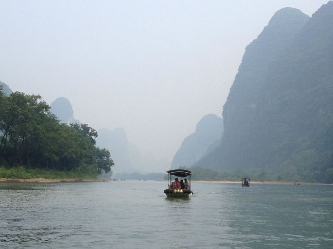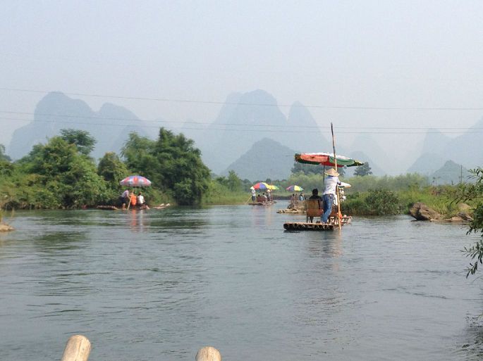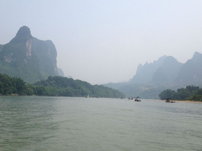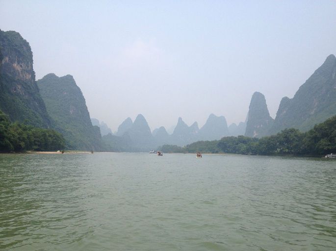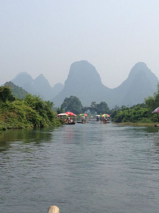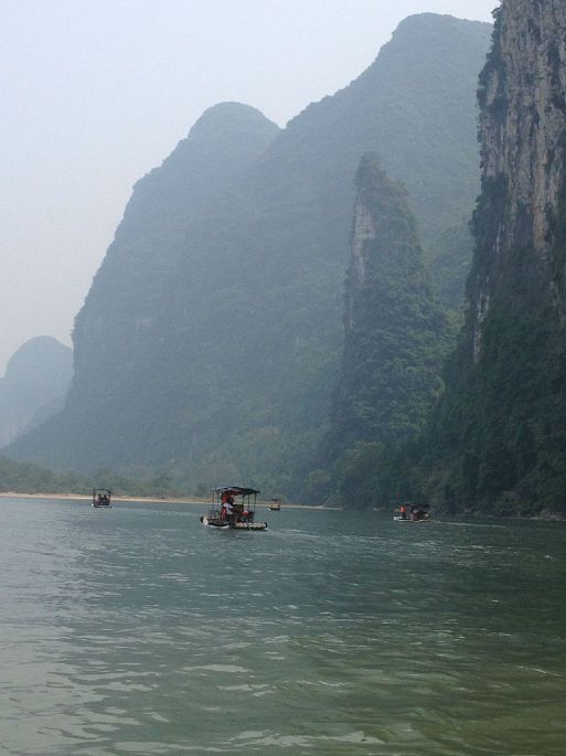 漓江果然大气很多,到处是急流,两岸就是高山,尽管是下午,还是有点烟雨朦胧的感觉。