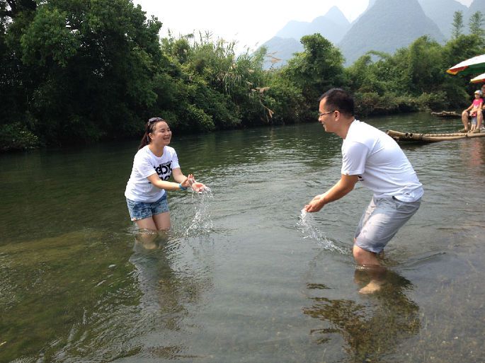 6.14日下午一下班便直奔火车站,因为是夏天,天气有点闷热,但请大家注意,现在一般的都是空调车,晚上空调温度开的很低,坐硬座的睡觉时很容易感冒,且睡不着。因为有过深刻体验,这次特意带了长裤,长袖。但计划赶不上变化,因联系的几个竹筏师傅都说漓江出了事故,可能暂时封航,但遇龙河没有,便临时改变计划,从桂林直奔阳朔,先去遇龙河漂流,回来之后再去漓江,后来事实证明这一决定非常正确。