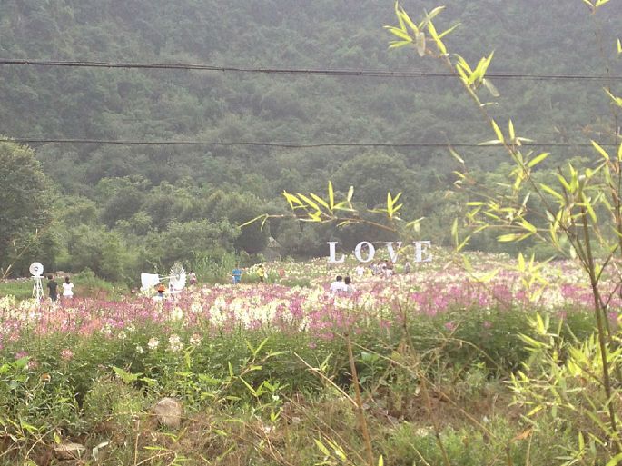 路边有一小片花海,里面挤满了拍照的人。停下来吃了一碗凉粉,味道很好,老板娘乘机说可以拿到大榕树的门票,只要10元,我们抱着试试看的态度一路骑过去。