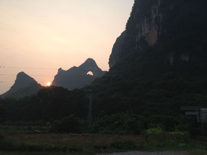 大榕树出来,我们变奔赴十里画廊的最后一个景区,月亮山。正好赶在太阳下山的时候。