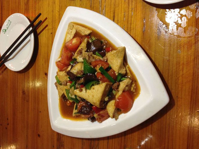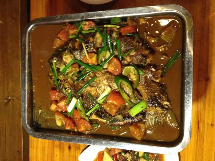 到阳朔已经8点了,又到吃饭的点了。吃饭找点真的很麻烦,想吃点特色的,又怕找错店子,于是网上百度了一下,发现一个叫胜记的店子的啤酒鱼不错,正好在客栈旁边,于是进去点了慕名已久的啤酒鱼和豆腐酿,花了117元,味道还真的不错,反正我们是吃了个精光。
