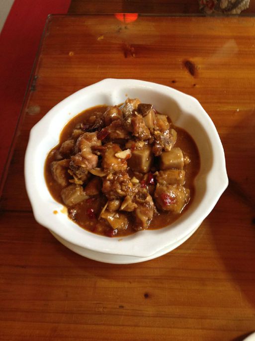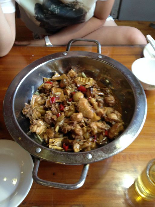 因为我们不是爱热闹之人,逛到10点就回去了,早点休息,养足体力,准备明天的漓江之行。第二天的时间比较充裕,漓江上午12点才开航(针对的是私人筏子,官家大船不受限制),所以一直睡到11点才退房。然后直接去吃中饭,还是在胜记吃的。香芋辣排骨、什么什么鸡(记不得了)。某人对香芋情有独钟,赞不绝口,我也认同。花了116元。