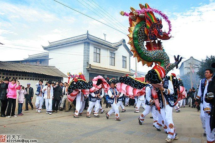 船终于靠岸搁浅,年轻人跳进水里,簇拥着本主的座驾上了岸。浩浩荡荡的各路队伍走向双廊街,沿着洱海边主道穿行,往南巡游。一路上旌旗开道、敲锣打鼓、舞龙耍狮,一直游到大建旁村的本主庙,将本主安顿好,再进行隆重的祭祀和娱乐。