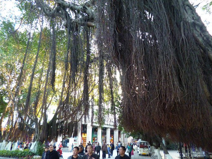 随处可见的榕树。如果地方够大的话,据说榕树的这些根须会落到土里,长成跟枝干一样的东西,所谓独木成林。从左边那颗榕树进去,就是龙头路了。