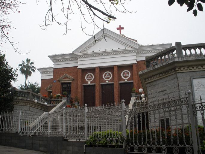 顺着鸡山路走就到三一堂了。这里是鼓浪屿的正中心,可以作为一个地标。