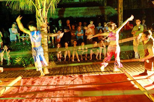 海南保亭的呀诺达雨林里,生活着一群快乐的黎苗族同胞,每当夜幕降临,他们便拿出心爱的八音乐器,轻拢慢捻抹复挑,将那独特而神秘的黎苗音乐一遍又一遍地演奏,为了欢迎远道而来的客人,黎苗同胞们还会架起竹竿,和他们一起尽情欢跳竹竿舞。这样的夜晚不能不说是独特的。