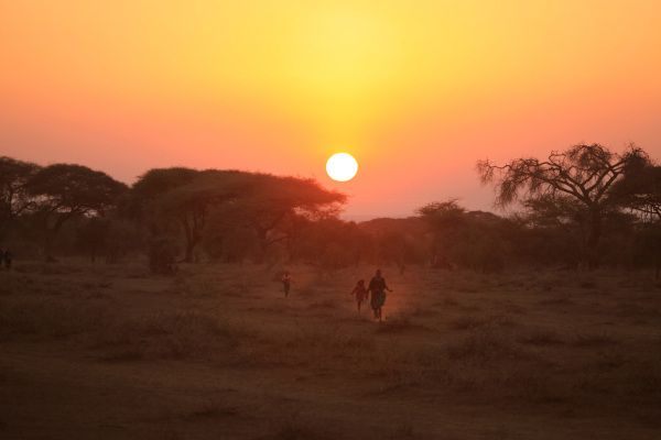on the way to amboseli in the morning, the students running from the sun.