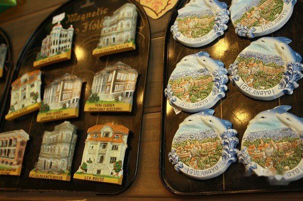 吃完后,我们打车去轮渡,买票做船去鼓浪屿,然后去菽庄花园逛了一圈,那里有个钢琴博物馆,带孩子们去看看,钢琴博物馆有两个展馆,而且里面有导游,但是导游有固定的介绍时间,要去欣赏的事先了解一下吧。我记性太差,忘了拍照了。菽庄花园不大,景色还不错,不过由于钢琴博物馆里只能看,不能摸,又没有导游介绍,所以孩子们兴趣不高,上蹿下跳中我们向龙头路进发了。鼓浪屿的龙头路有好几条,不过那个区域中有各种各样装饰的小店,吸引孩子们的是这个商区有很多的特色店都有自己的特色图章,还有卖敲章的各种小本子,这下孩子们来劲了,逛街不是为了看特色店,而且看自己敲了多少个章。