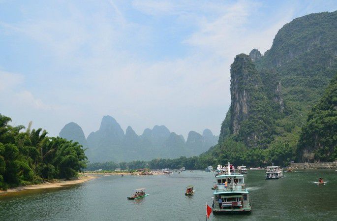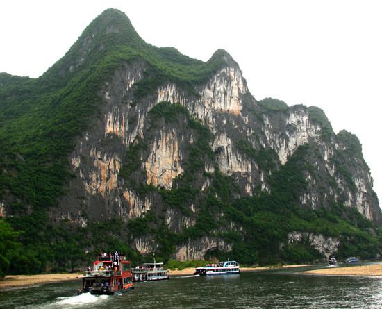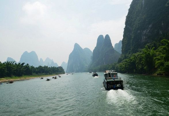 “山青、水秀、洞奇、石美”被称为桂林四绝。而素有“百里画廊”美誉的漓江山水更是桂林美景的精华和代表。不管是组团还是散客,几乎每一位来桂林旅游的人都不会错过乘船游漓江去体验这场山水盛宴。游漓江有好几种方式,我坐的是那种能容纳数十人的双层大游船,上午九点多,从位于桂林市东南的竹江码头出发登船,经过四个多小时的行程,于下午近两点时到达阳朔码头。