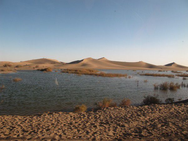 途中唯一停下休息就是吃饭,似乎感觉就只有一个地方可以吃饭,所以饭菜是相当的昂贵和粗陋。司机大哥在我们毫不夸张的抢食中,很腼腆的都不敢怎么伸筷子。这让我想起了去青海湖的那个马师傅,也是这般敦厚老实。虽然这次的司机师傅看上去没有马师傅那样苦大仇深,但是也属于诚实可靠的了。就这个辛苦程度而言,最初谈妥的价格似乎给我感觉又像当年亏待马师傅一样,但是司机大哥薛师傅却一丁点都没有要加价的意思。在停车方便的时候,看见不少的人在低头寻找着什么。薛师傅告诉我们戈壁滩上有一种戈壁石,也是玉石的一种。虽然寻找了一通没有收获多少,但是在后来的黑城居然有人出售这种石头,像雨花石一样论抓把卖的,才知道原来这个也是可以卖钱的,后悔没有多寻找一点,这是后话。顺便一提的是,在这个满眼戈壁滩的路上,找厕所方便简直是一件比较痛苦的事情。为了赶路,根本就不可能轮流去那个简陋的不能再简陋的所谓厕所,于是路边的沟渠就成了天然卫生间。所以出门在外,只能因陋就简喽。