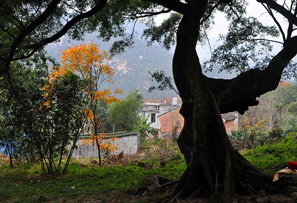 在杨家溪赏枫,还可赏到另外一个树木奇观。在枫树林间,有17丛古榕树,是我国纬度最北的古榕群,最早一株植于南宋。好像是为了配合枫树的表情,榕树一年四季常青的叶子,衬得冬日的红枫愈加美丽多姿。古榕群和枫香林相伴而长,在亚热带地区极为少见。因其独特的林木特色,这片榕枫林被收入《中国树木奇观》一书。