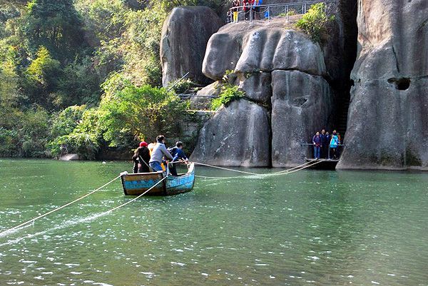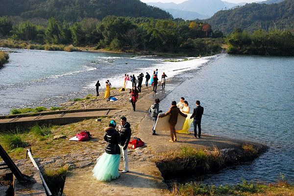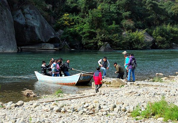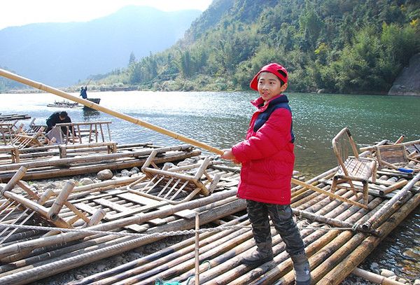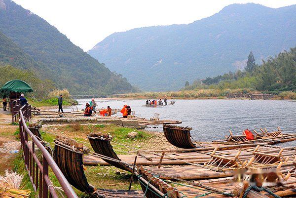 穿过枫林丛和古榕群,可乘电瓶车(景区购票去15元,回程10元,如果途中搭农户小三轮可讲价更实惠)前往牙城镇龙亭村蓝兜码头,去体验撑古朴、独特的毛竹筏,(一个竹筏200元、可坐5人)杨家溪漂流是国内乘竹筏飘流最长的水程之一,同时也是国内惟一能进行山海飘流的游览区。