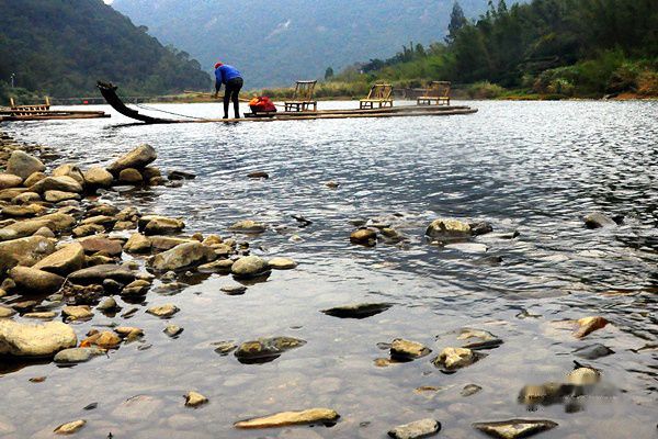 乘竹筏顺溪而下,任冬日的暖阳晒在身上,悠闲地欣赏两岸风光,偷得半日慵懒。在这里两岸有罕见的樟树成林,呈带状连绵十多 里,常年翠绿;又有芦荻片片,春夏碧绿成茵,初冬白絮遍野。。。