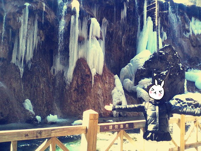 冬天的水帘大部分结了冰.但是很壮观,很美丽.一路跟结伴的都喊 二师兄,快走 快走.![]()