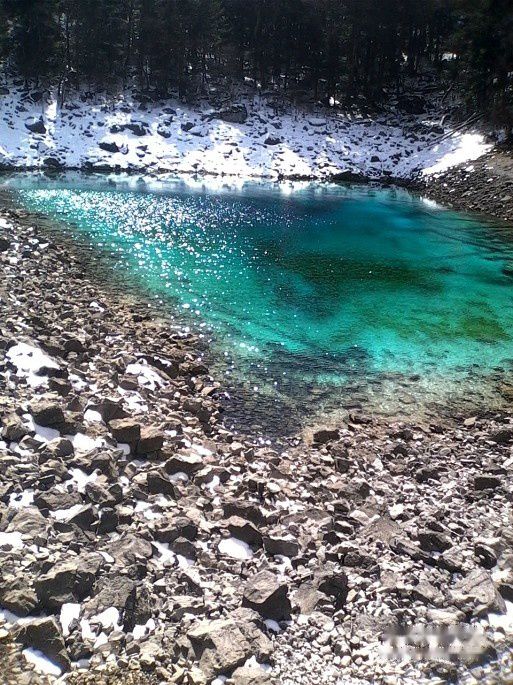 .五彩池是一年四季都不会冻住.色彩斑斓.比较妖艳的一个海子.