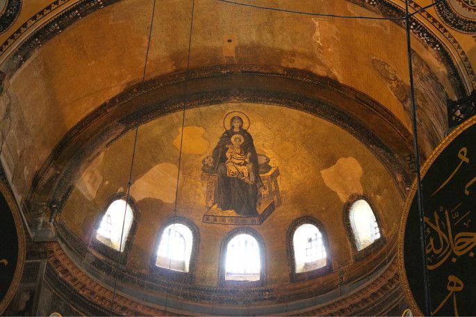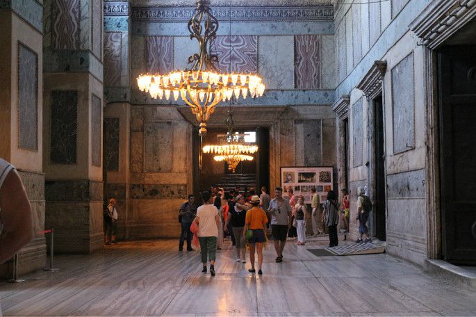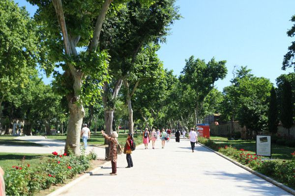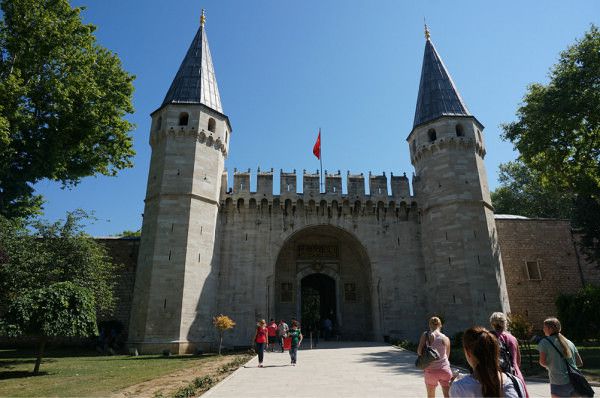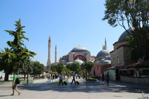 从蓝色清真寺出来,对面就是圣索菲亚教堂,就是下面这个红色的建筑。圣索菲亚大教堂周一闭馆,我们就直接去了老皇宫。