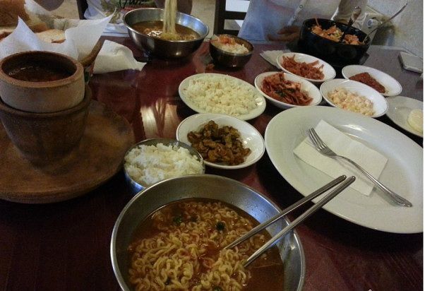 找到了一家韩国餐馆,犒劳一下我们的亚洲胃。一碗方便面竟然要15里拉,还不给卧蛋,忒贵啦