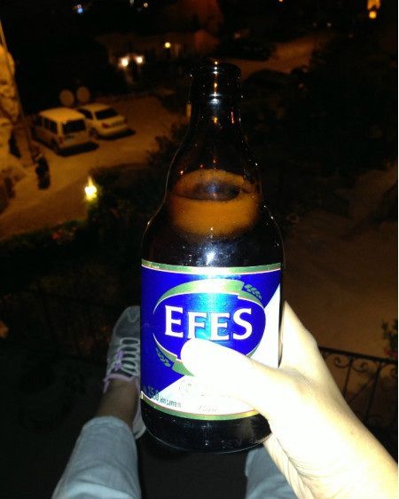 在超市买了两瓶啤酒,土国最常见的只有这一个品牌,个人觉得有点苦。格雷梅的夜晚安静惬意,坐在天台上聊天看星星喝啤酒很舒服。这个矮胖子啤酒陪伴我们全部旅程,土国的食品好单调,啤酒基本就这一种,不过有好多类型,小矮胖子,矮胖子,铁皮矮胖子,黑矮胖子。。。,小零食大概也就几种,乐事,奇多,还有个玉米片的品牌。大到伊斯坦布尔的主街里的超市,小到乡村巴士中转站边上的小超市,都在门口齐齐摆着这几种小食品,难道土国的小食品是垄断产业?如果有土国的朋友来就带他们逛超市好了,就逛小食品那栏,我觉得他们能特别开心。