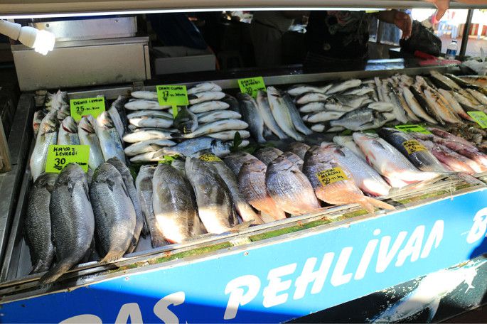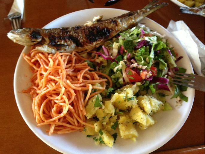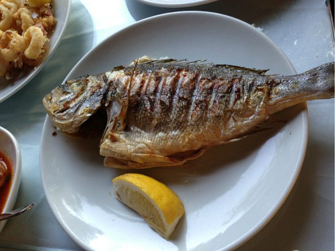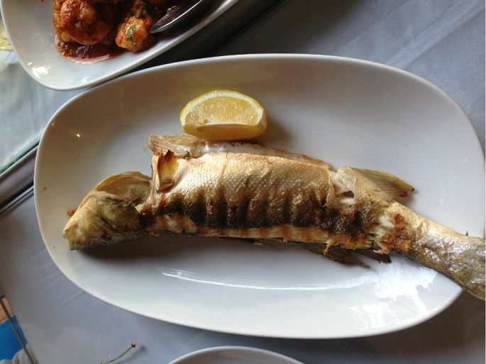 回到港口后,一路打听步行十分钟来到了鱼市场。鱼市场里经营各种鲜活的海鲜和新鲜的水果,买完了就可以在旁边的饭店里直接加工,按人头收费一个人6LE。吃着海鲜,喝着啤酒,再往嘴里扔几颗车厘子,幸福啊。