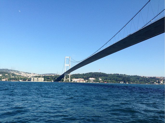 博斯普鲁斯海峡把亚欧大陆一分为二,海峡上有数座大桥连接,也有摆渡船在两岸来回摆渡。可惜我们在土国期间,塔克西姆广场正在游行,为了安全起见我们的活动范围一致在欧洲区。后来弟弟妹妹们去逛了逛亚洲区,据说很有趣。看来只能留下点遗憾,作为再来一次的借口啦。