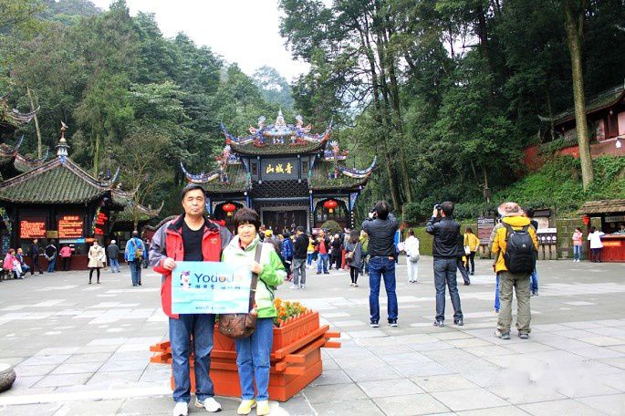 按照行程安排,22日晚住青城后山,留给青城前山的浏览时间也不是很充裕,只能看一下具代表性的景点。由都江堰到青城山可在景区大门处乘101路公交车,每人2元,40分钟即可到达终点站,然后乘景区观光车抵达青城山景区门口,每人5元。