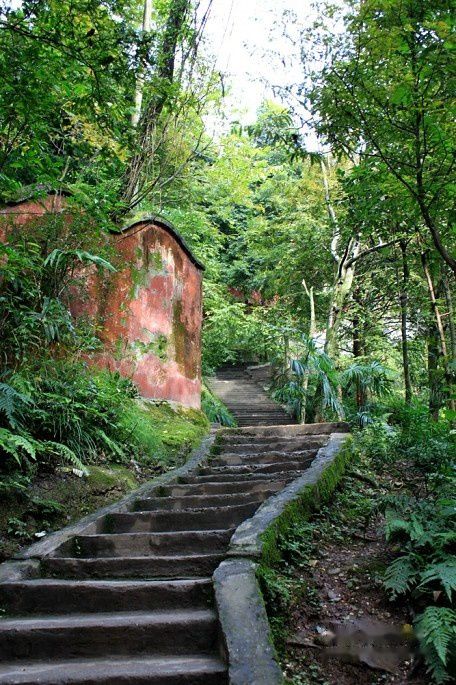 从青城山的山脚到山顶,有许多弯弯曲曲的古道。这些古道主要用石板砌成,有的蜿蜒在树林丛中,有的盘踞在山崖上,还有的依偎在溪流边,四周林木苍翠,浓荫蔽日,身游至此大有如入仙境之意,是避暑绝佳之地。如此的景色,爬山时没有很强的疲惫感,峰峦、溪谷、宫观皆掩映于繁茂苍翠的林木之中;道观亭阁取材自然,不假雕饰,与山林岩泉融为一体,体现出道家崇尚朴素自然的风格。