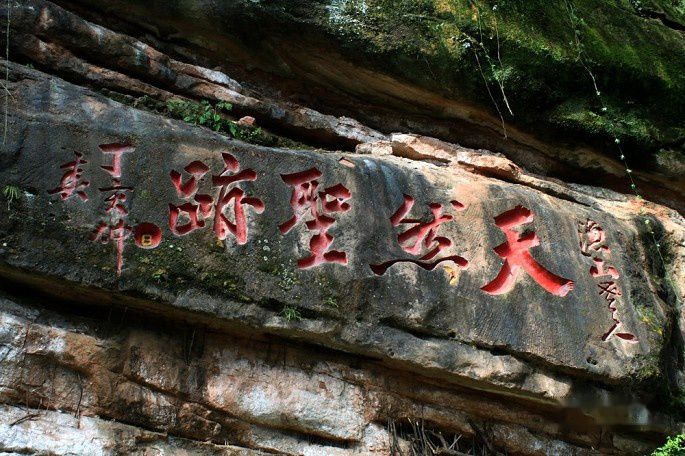 全真观前行不远即达天师洞。山门建在高高的陡坎上,左侧有青龙殿,右侧是白虎殿。山门正中悬“古常道观”金匾,庄严的殿堂与曲折环绕的外廊,随地形高低把殿宇楼阁连成一片,四周峭壁陡岩,群山拱揖,宫殿金碧辉的建筑与自然山水交相映衬,分外幽雅。