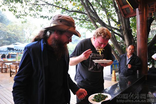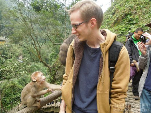 喝着啤酒唱着歌,泡着温泉侃大山,这小日子滋润得光听着都觉得很爽,可来自美国的托马斯、挪威的摩恩、美国的约翰、爱尔兰的肯却在峨眉山过上了这样如神仙般的逍遥日子。都说四川人会享受,不是亲眼所见,我几乎不相信自己的眼睛。当托马斯一见到峨眉山景区山门时,他兴奋的在车上大叫起来,学着中国人的模样念叨“阿弥托福”,逗得一车的朋友哈哈大笑。原来托马斯和峨眉山还真是有缘,数年前他曾在峨眉山景区旁西南交大任教过五年。此次故地重游,别有一番滋味在心头。晚饭一吃完,他忙不迭的邀请几位新朋友出去逛,他想一回导游。。。。