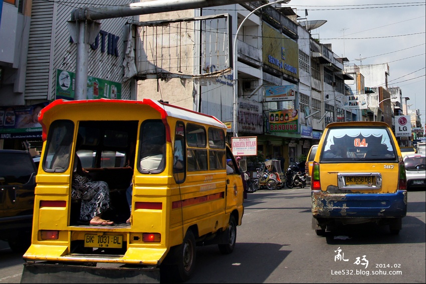13↑招手即停的公交车opelet是棉兰最经济实惠的交通工具,大家只要跟旅馆老板打听具体的公交线路和票价即可。很多攻略书都说车上小偷很多,我觉得在这种相向而坐四目相对的双条车上偷东西比搭讪困难多了。小偷啥的我是没见到,请我吃东西的热情群众倒不少