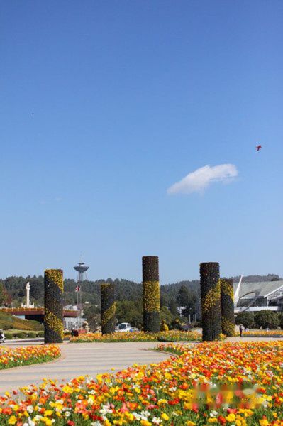 世博园走马观花的看一下也需半天,如果时间尚早,可乘园内索道(不推荐)或园外公交车至金殿景区(门票15元,无学生票)。园内挺大的,会有很多自称导游的人上前推销开车游览。我们是自己沿着主干道步行的。基本上景点都走到了。