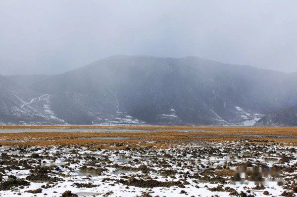 晚上做7点整的汽车去香格里拉,11点到。车票65元/人。晚上我们碰到香格里拉冬天的第一场大雪。