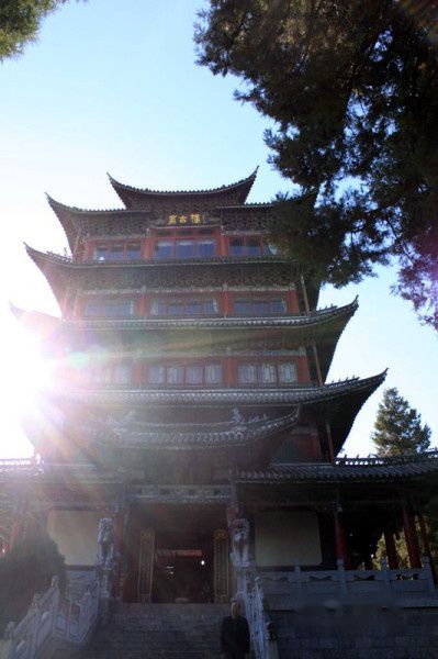 如果你去了木府也想去万古楼,在木府去顶点的上行的路上有个门进去会有人说要门票,过了门就是万古楼的景区。因为我们不知道,所以后来走了很大段冤枉路,重新从山下前往万古楼。