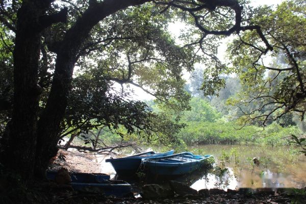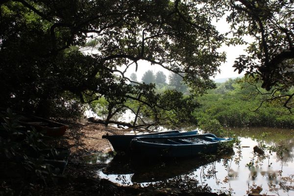 阿姨带我在盐灶村下车。带我走下小路。她说她是周末来这里亲戚家的农家乐帮忙的。她带我走过他们的农家乐,她说她现在不忙可以带我在这转一转。于是她带我来到海边,带我走了一遍红树林。阿姨给我讲他们小时候常常在这里玩耍的。如今这里依旧保持当年的风景。只是都已经保护起来。而如今在这里玩耍的孩子已经不多了。