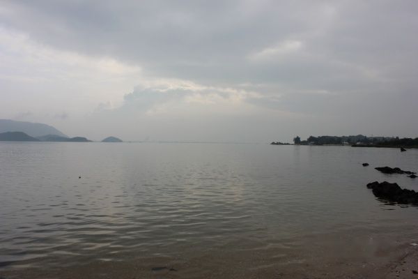 早上的海边仍有朦胧之意。