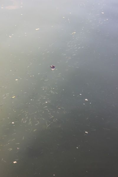 水中的小鱼非常多,也许它们是在吃掉下去的虫子。