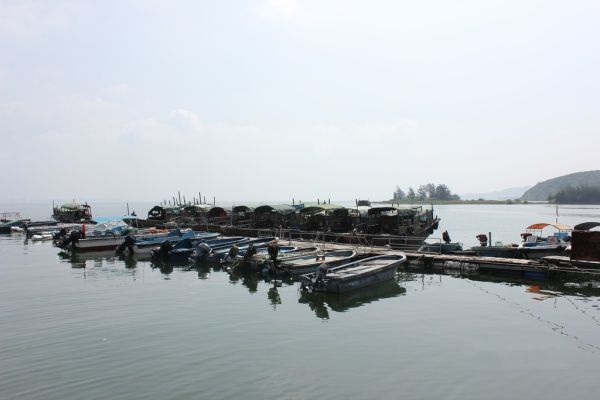 码头停着很多渔船!