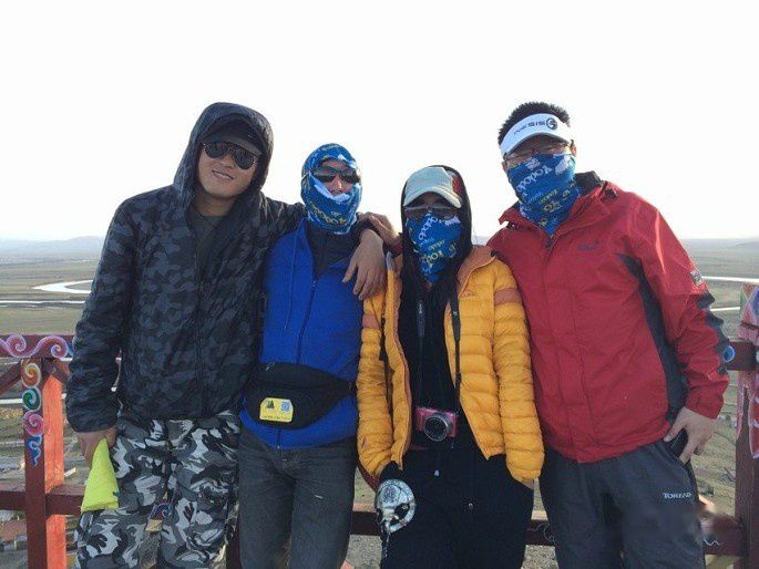 黄河九曲第一湾等待日落,为了防止暴晒脱皮全副武装后的造型。