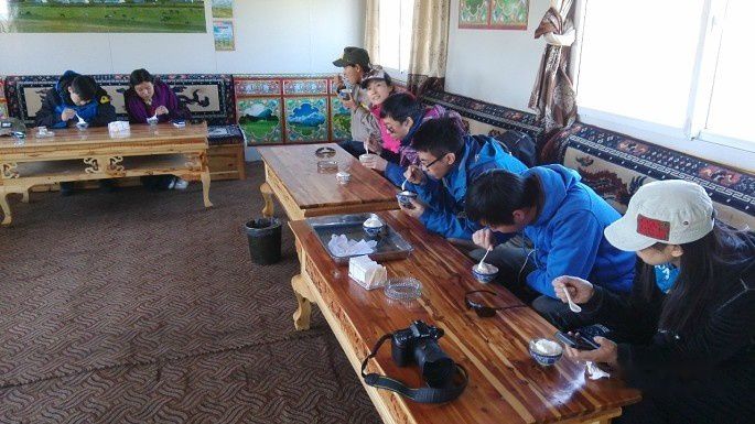 草原上尽情撒欢之后,到帐篷享受饭前酸奶,藏民自酿的酸奶香甜润滑。藏民接待朋友的帐篷也相当有民族特色