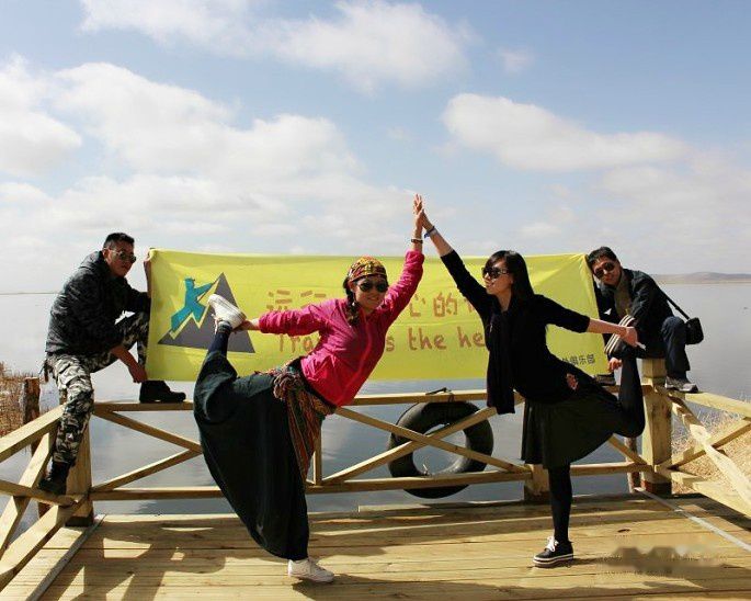 不得不惊叹花湖的美,白是那么的云,蓝是那么的天,透是那么的湖,景色宜人至极!你的镜头无论放哪都是可以拿回去做桌面,一丁点不夸张!所以花湖的时间里最大的娱乐就是拍照,各种拍!各中秀!我和花姐的高原双人瑜珈!